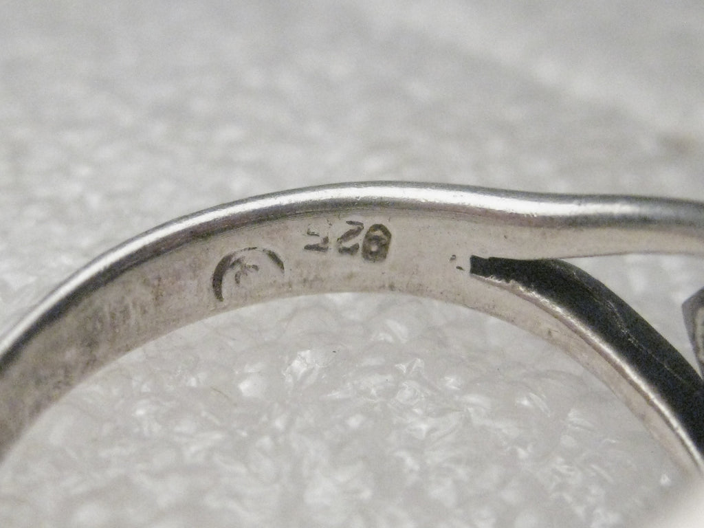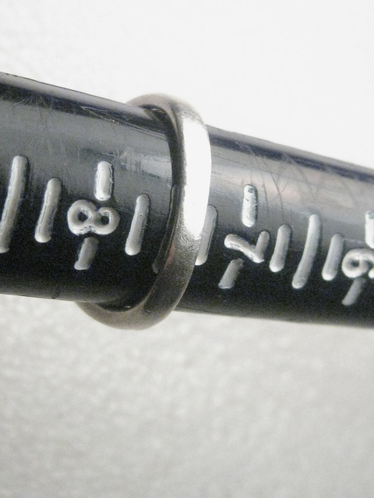 Vintage sterling silver ring, size 7.5, 3.80 grams. The design fits across the top of the finger and is about 1/2" from front-to-back. It has an oval shape from side-to-side with a Celtic cut-out design - with cut-outs down the side of the finger on the band that forms into a solid band that is 2.7mm at the back of the band and the top if appx. 10.5mm - close to 1/2". It has been tested and is stamped .925 - it is sterling. There is another mark on the inside of the band but I cannot tell exactly what it is. It is in very good condition. See Photos.