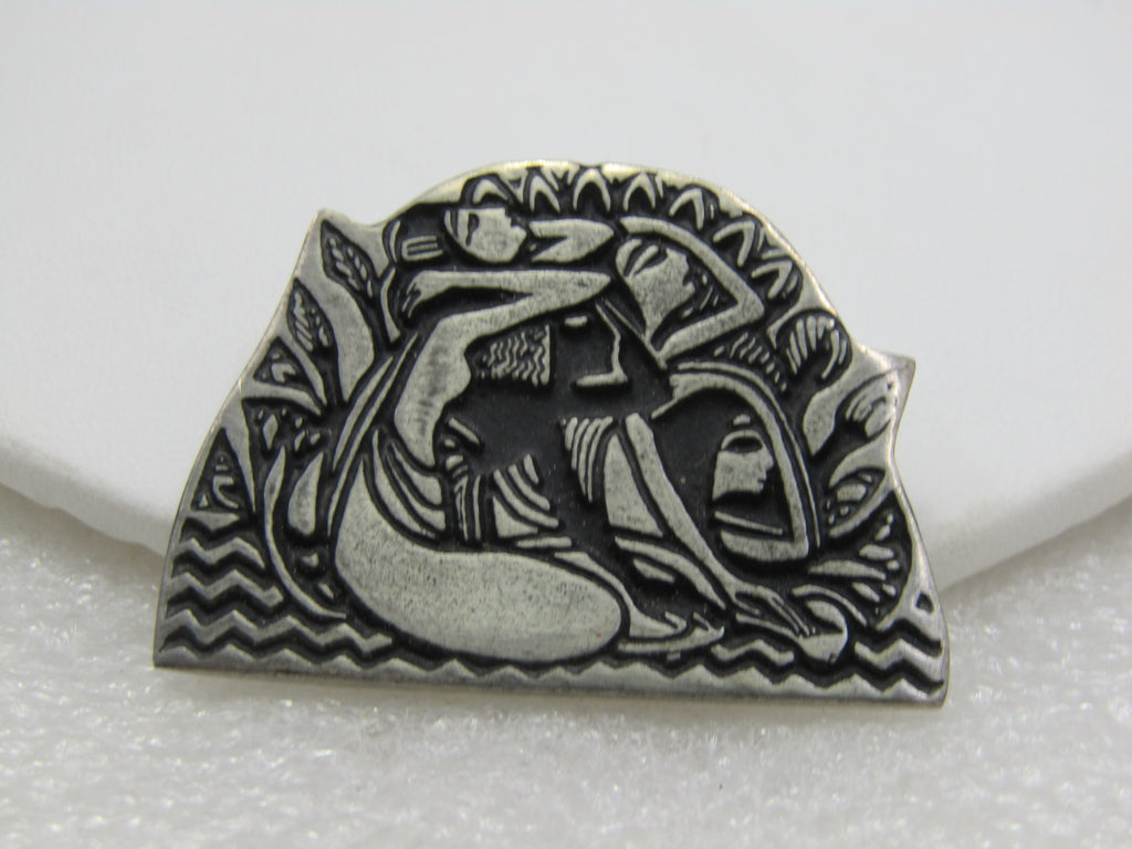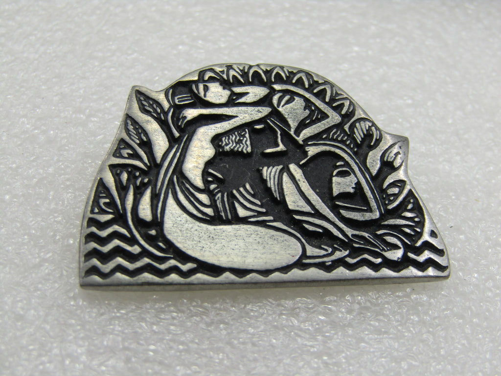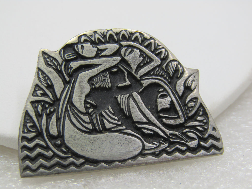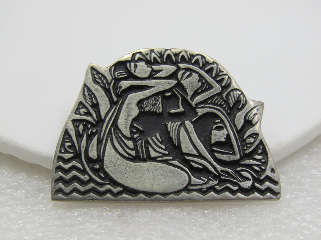 Vintage Urban Fetishes Maidens Bathing Brooch, 1990 Pewter. Carved appearances, 1.75" wide and 1.25" tall. Very good condition. (INV. W. 82821.8 SS 5632 J MV LD 9/10/21).