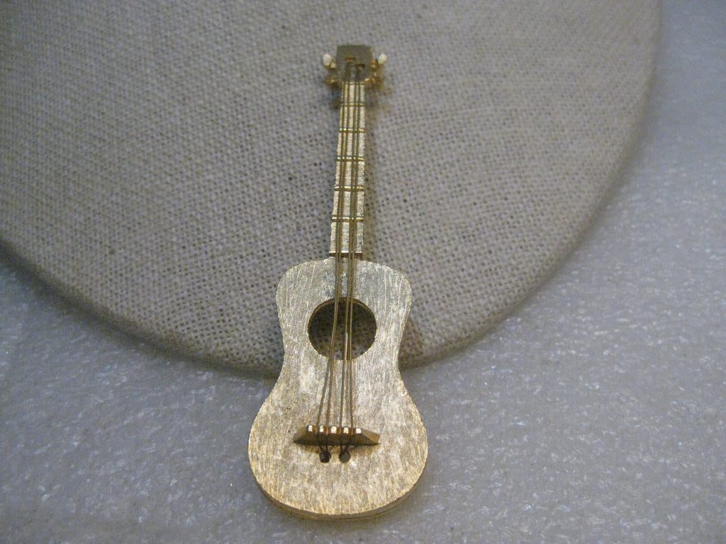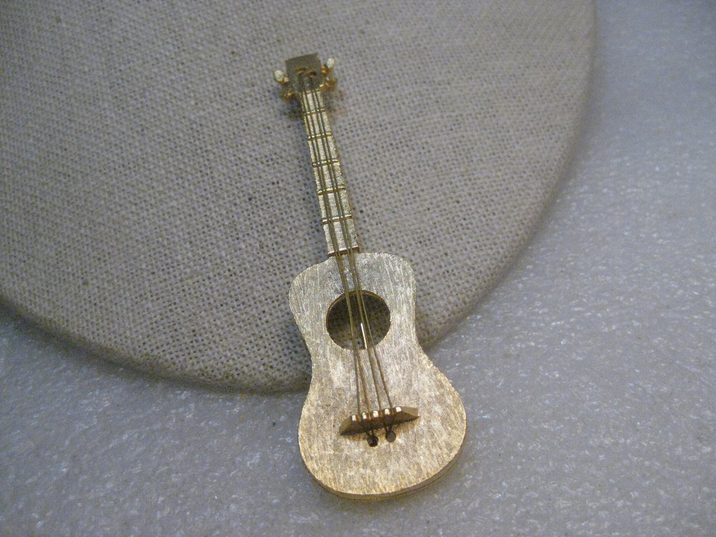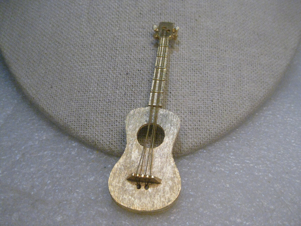 Vintage Guitar Brooch signed JJ, Rare, with string, 3", Gold Tone, Brushed