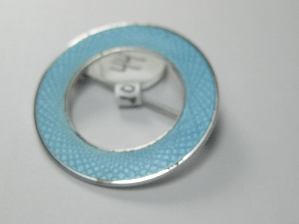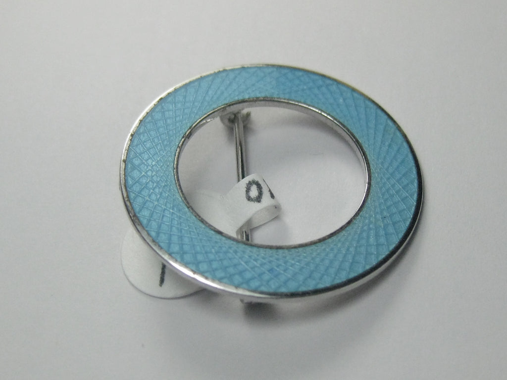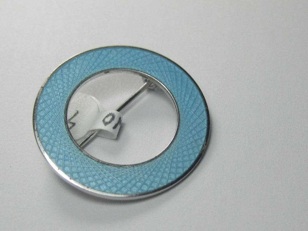 Vintage Sterling Aqua Guilloche Circle Brooch, 1960's