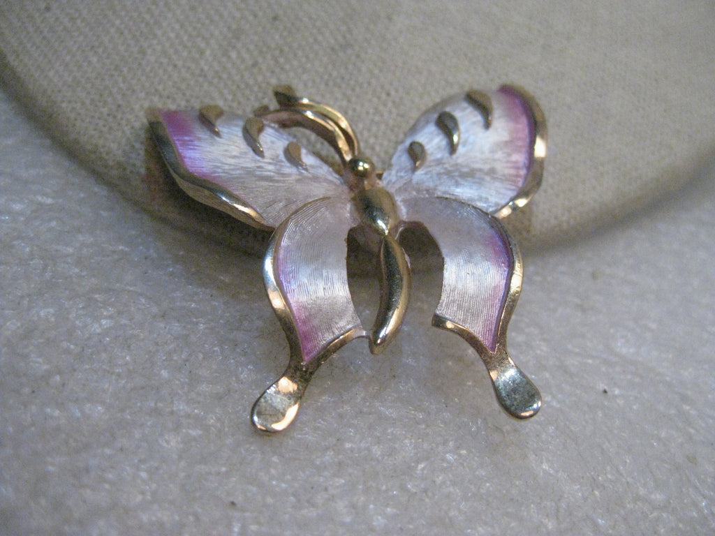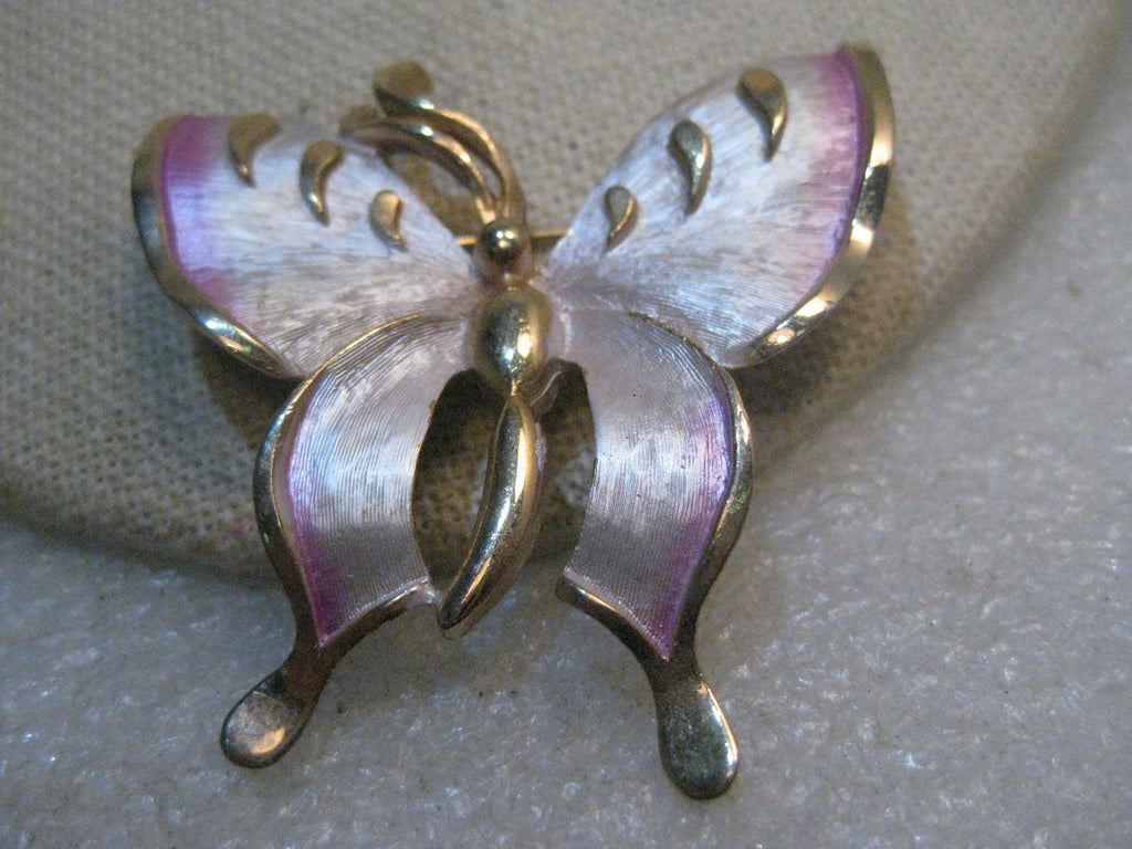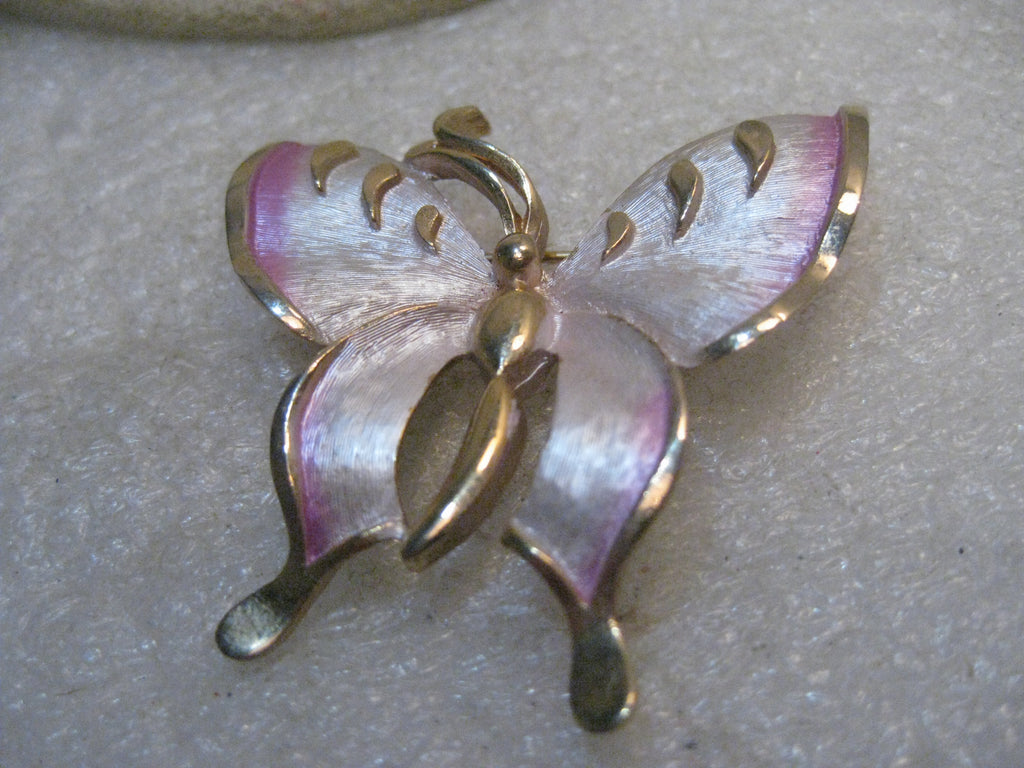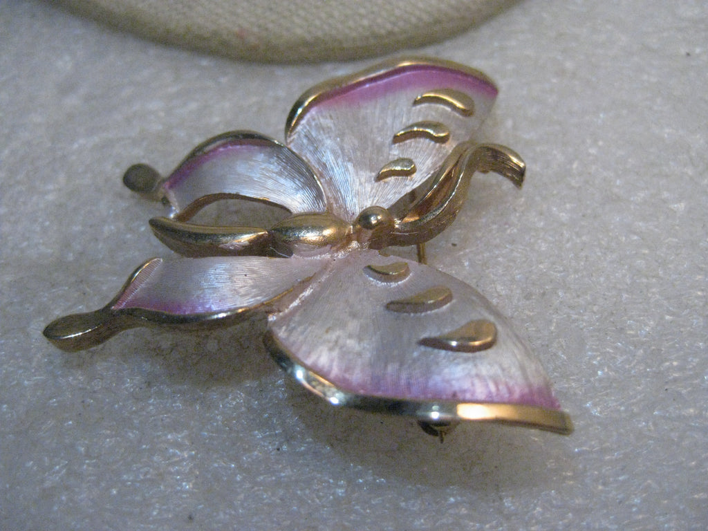 Vintage Two Tone Butterfly Brooch, Pink Enameling, 2", 1960's