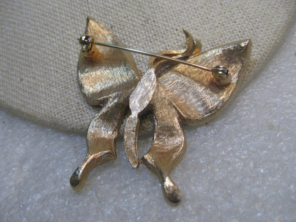 Vintage Two-Tone Butterfly Brooch - 2" tall and wide - it has a silvery brushed finish with raised gold accents and graming. There is a pink enameled accents on the edge of the wings. This is a 1960's modern design. It is not signed. The under carriage is a gold-tone brushed. These came from a PA estate. They are not signed. They are in very good condition. See photos. (Lot. Loc. W.7.1517G1.4X1 and LD 9/30/17).