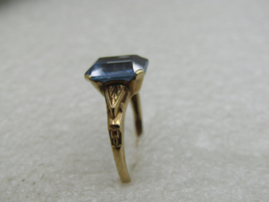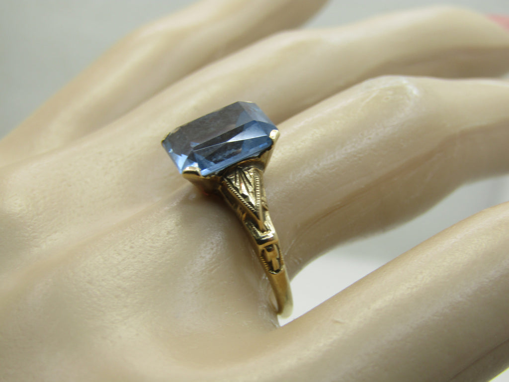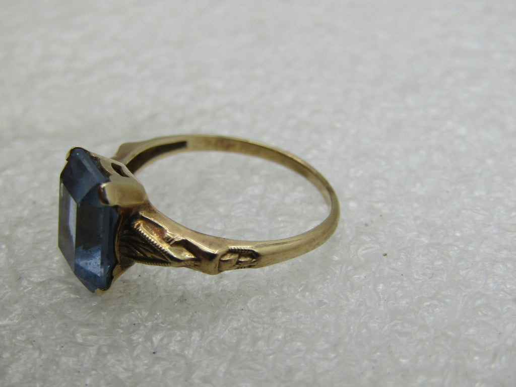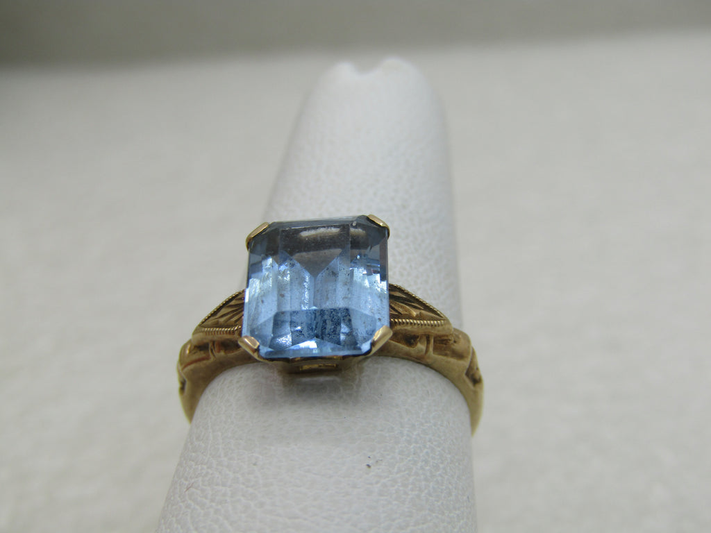Vintage 10kt Blue Topaz Princess Cut Ring, Art Deco, Sz. 7, 3CTW
