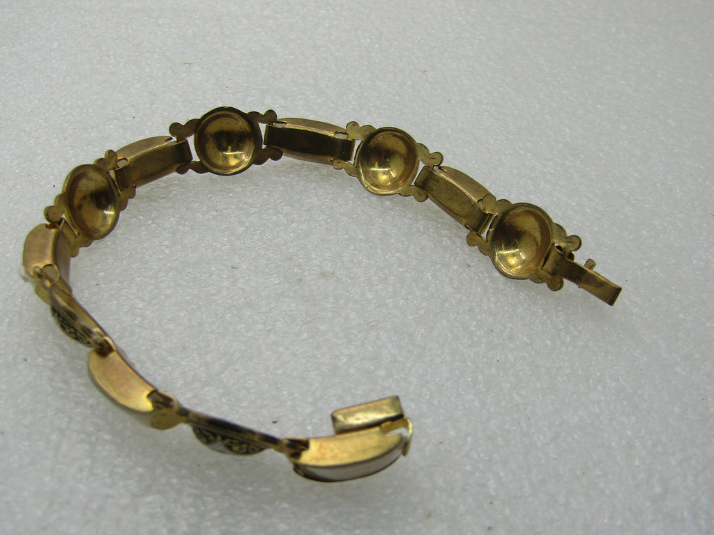 Vintage Damascene Mother-of-Pearl Bracelet, 7", 6.5-11mm wide