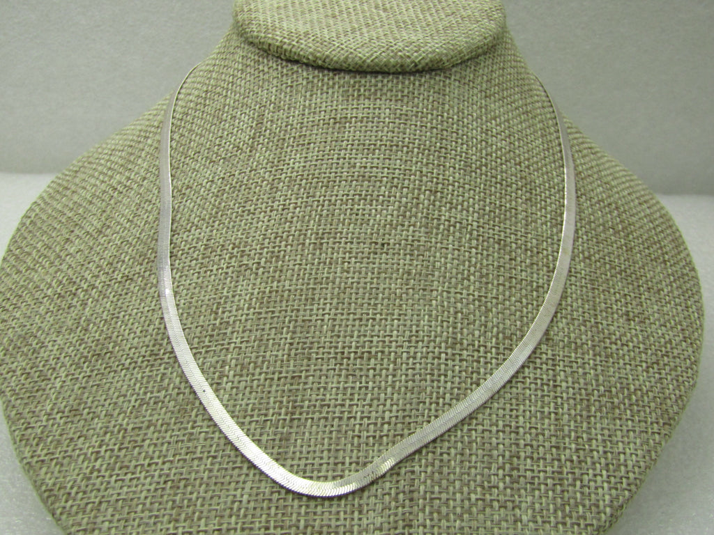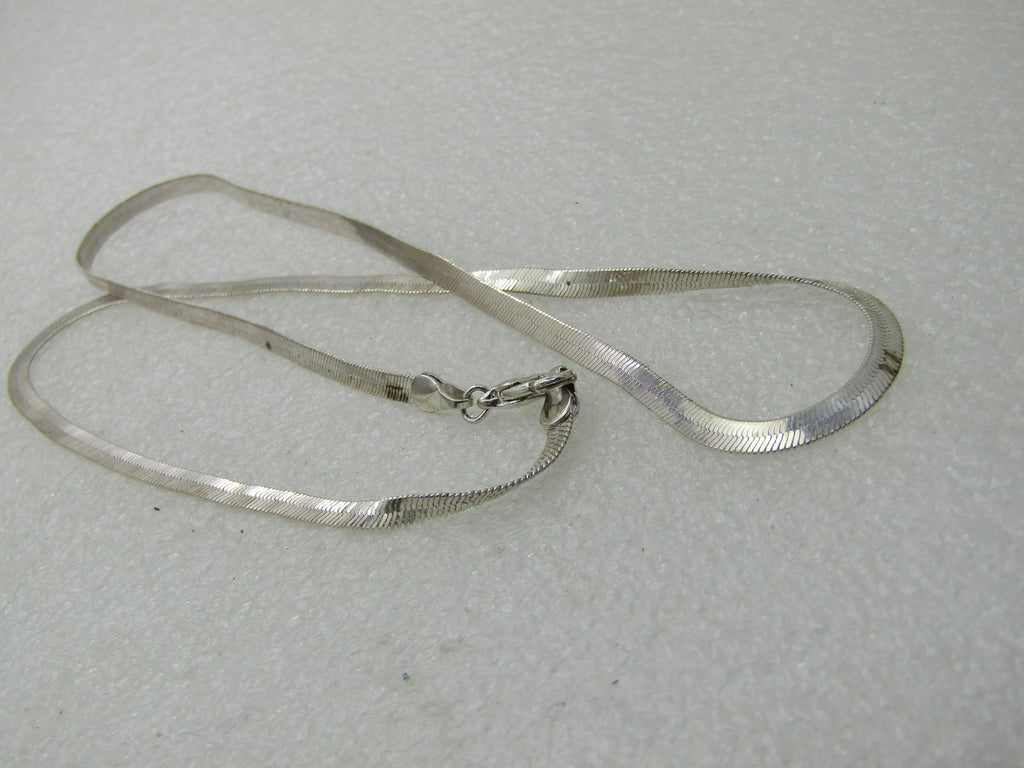 Vintage Silver Tone Herringbone Necklace, 18", 2.5mm Wide. Lobster clasp. Not signed by the maker. Tested and is not sterling. Has a very good design and moves well, not stiff. (INV. W72020.1X1 SS2897 LEB LD 11/1/20).