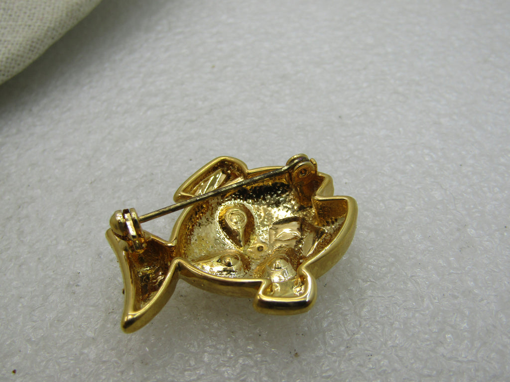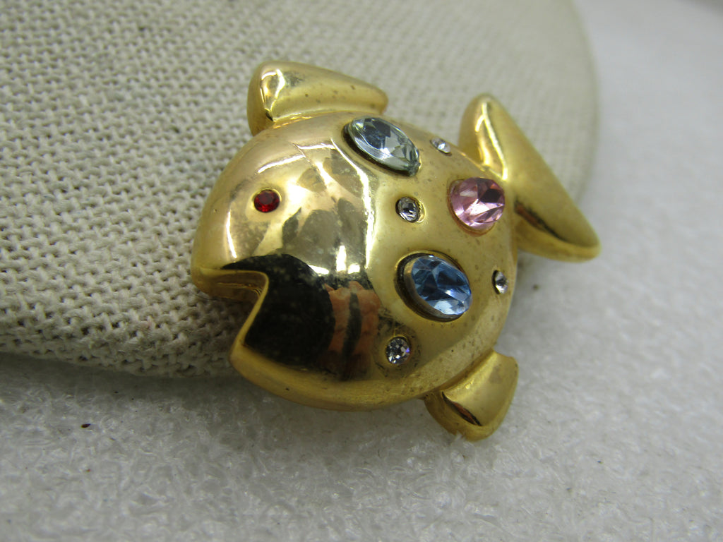 Vintage Pastel Rhinestone Fish Brooch, Gold Tone, 1-3/8"