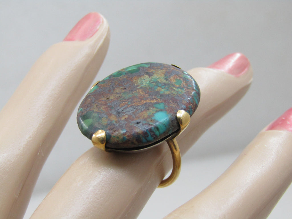 Vintage Southwestern 18kt & Sterling Gold Boulder Turquoise Ring, Sz. 5.5, 25+TCW.