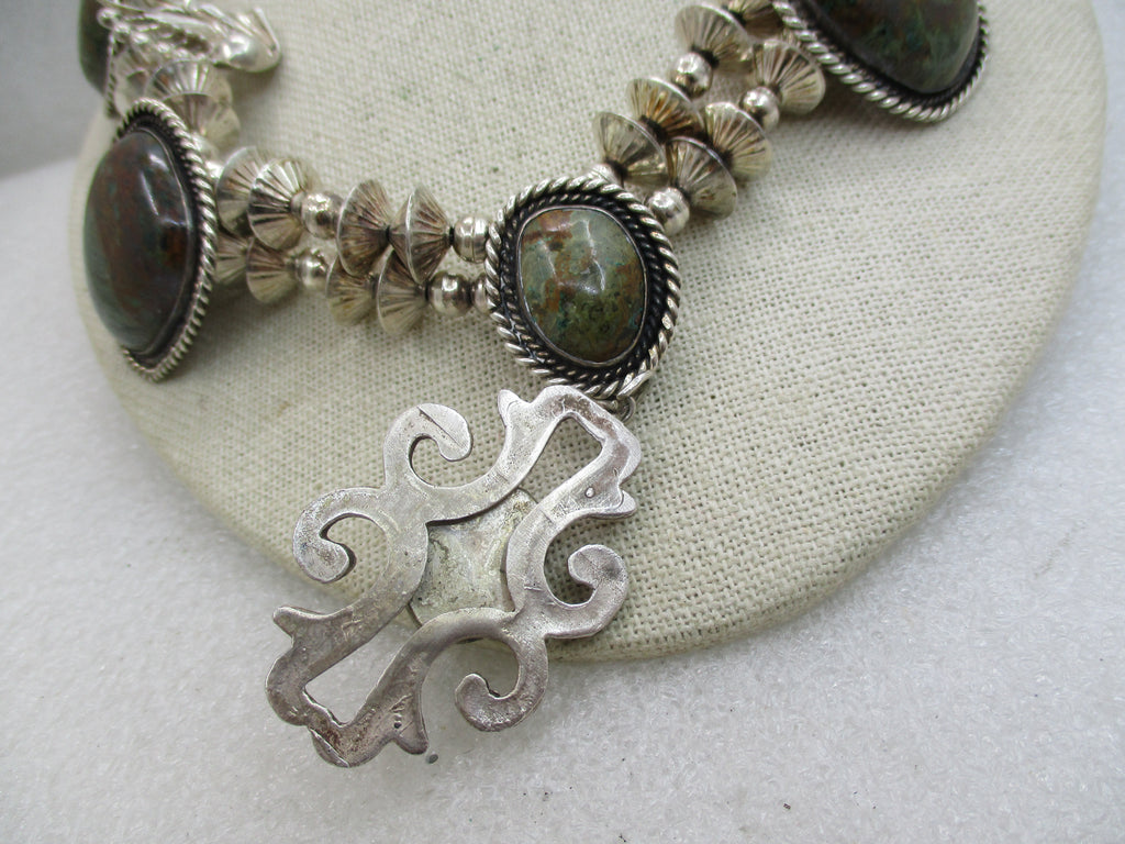 Vintage Southwestern Sterling Turquoise Squash Blossom-like Necklace, 17" (WB)