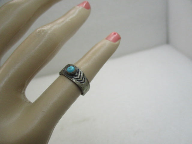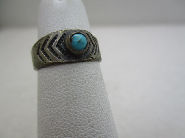 Vintage Sterling Southwestern Turquoise Stamped Ring, Sz 3 (SS)