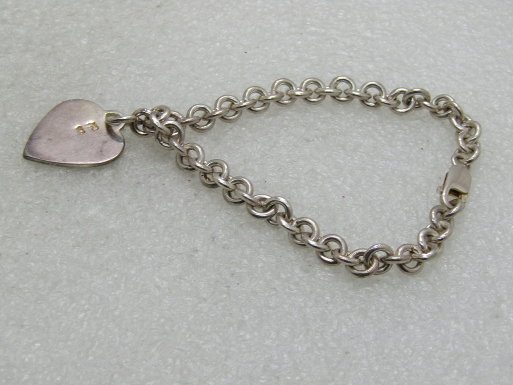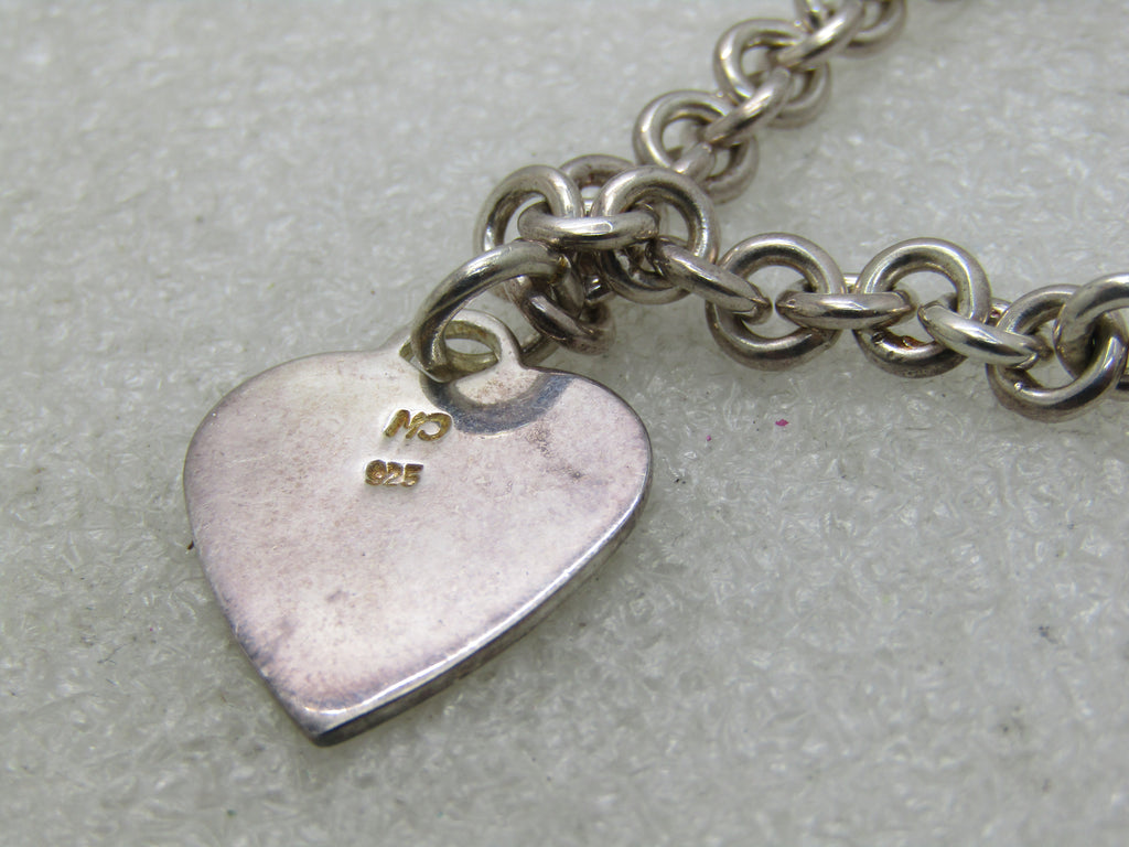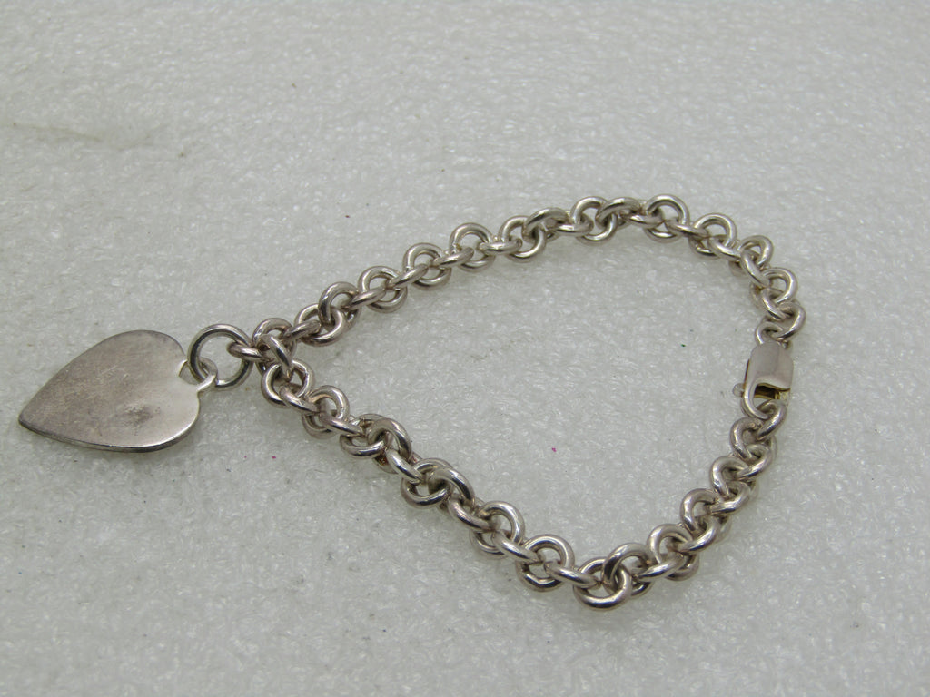 Vintage Sterling Silver Single Heart Charm Bracelet, 7", 18.81 gr. 4mm wilde. The heart is engraveable and 1" long and 7/8" wide. Alternating round link, rolo-ish. Lobster clasp. marked .925 and tested and signed Ma. 1980's-1990's. Good to very good condition, light typical wear. See photos. (INV. W.72019,1X1 SS1356 LMV LD 5/24/20).
