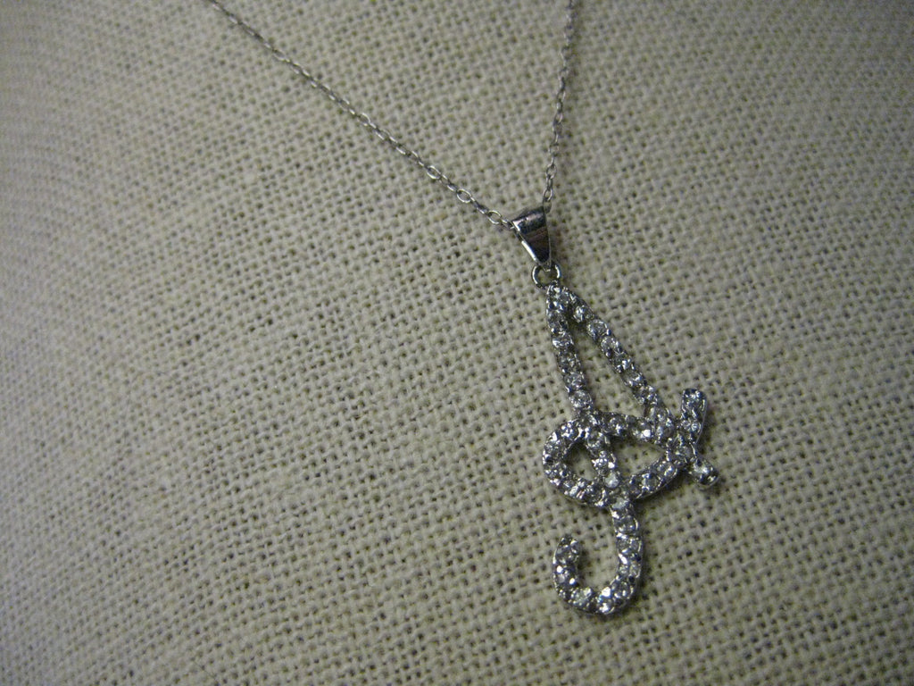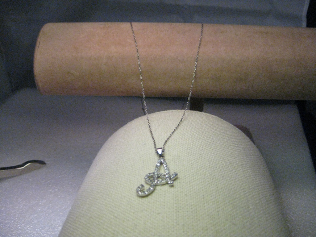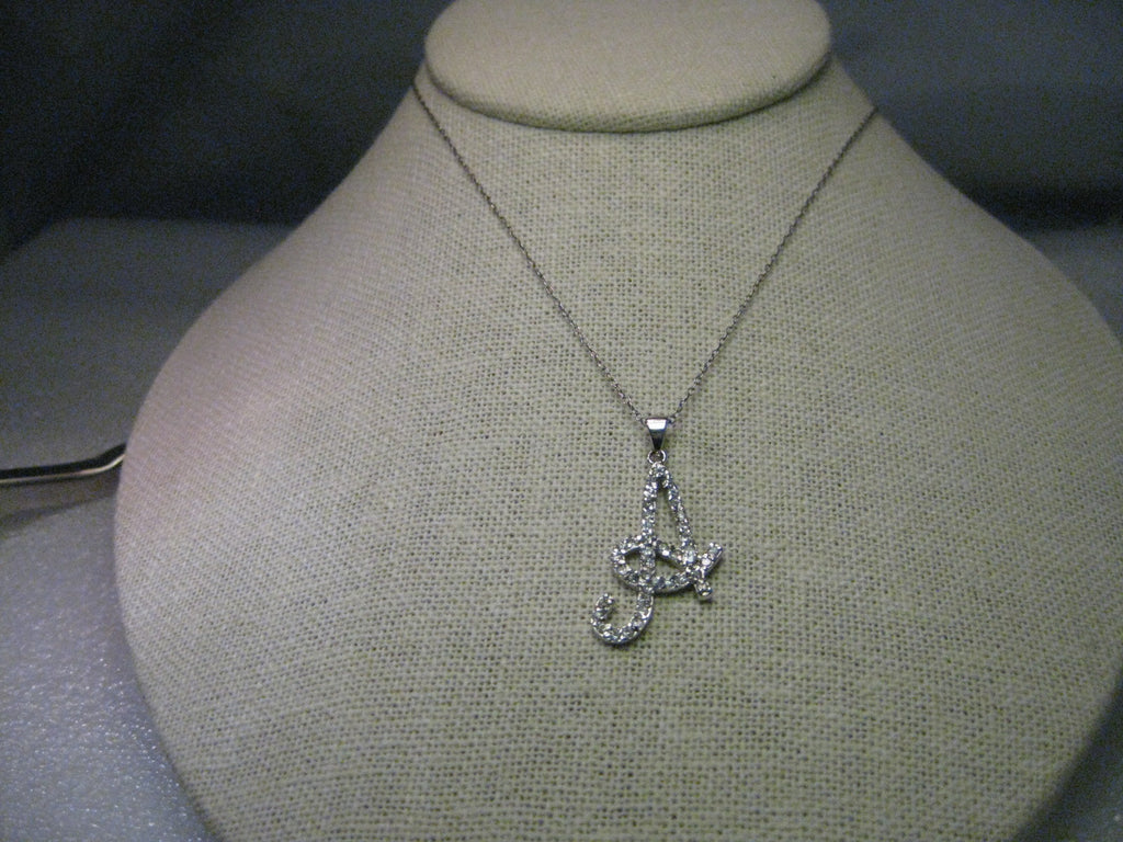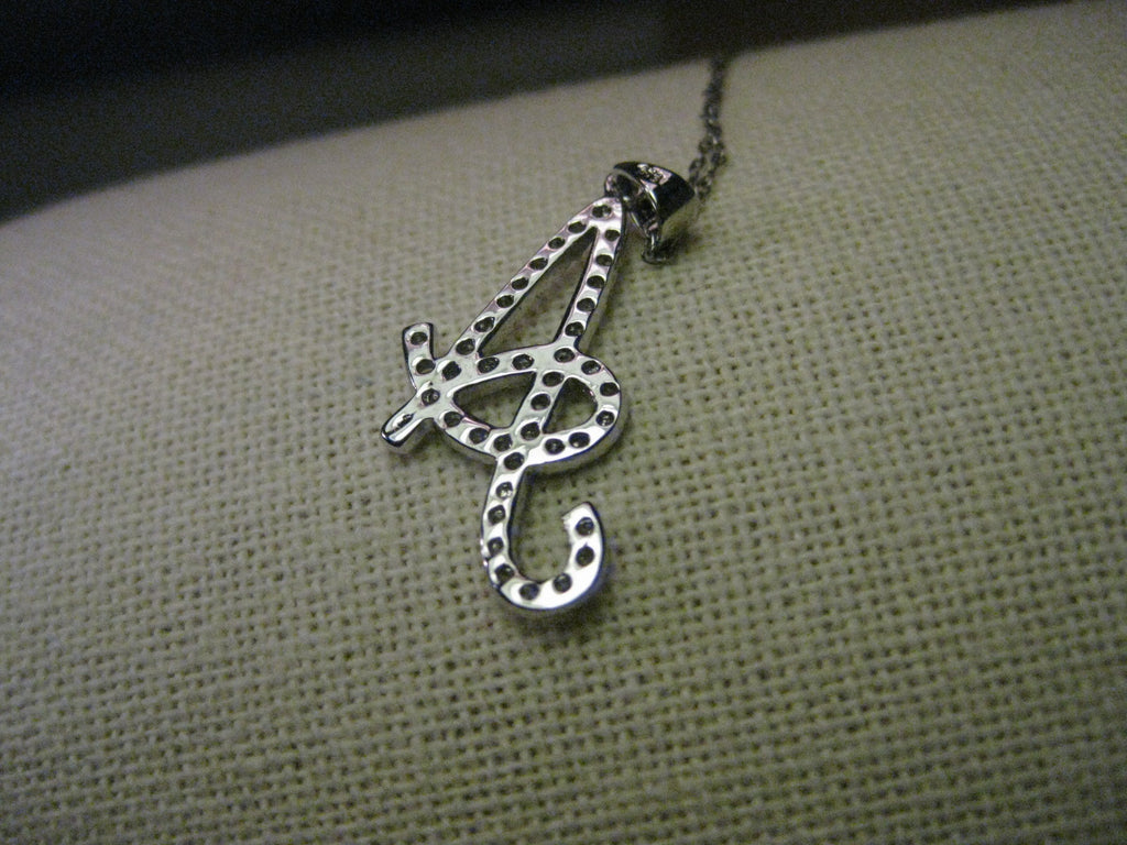Sterling Silver 20" necklace with 1.25" initial A pendant - Vintage but current - it is not brand new, just looks it. It is a sterling silver dainty link, marked and tested with a script A pendant outlined in pave set CZs. The pendant is also marked .925 and tested. 3.05 grams total weight. It is in very good condition - gift quality. Great for Mother's Day. It came in an estate sale in PA where much of the stuff was older. This is approximately 1990's era. See photos.