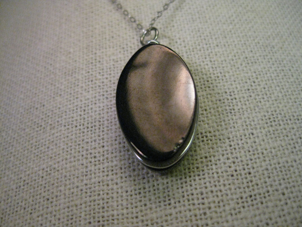 Vintage Sterling Silver Necklace, Black Oval Cameo, 16"