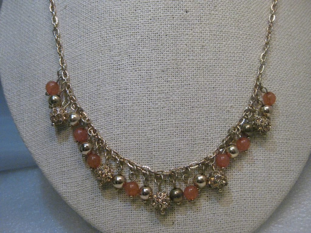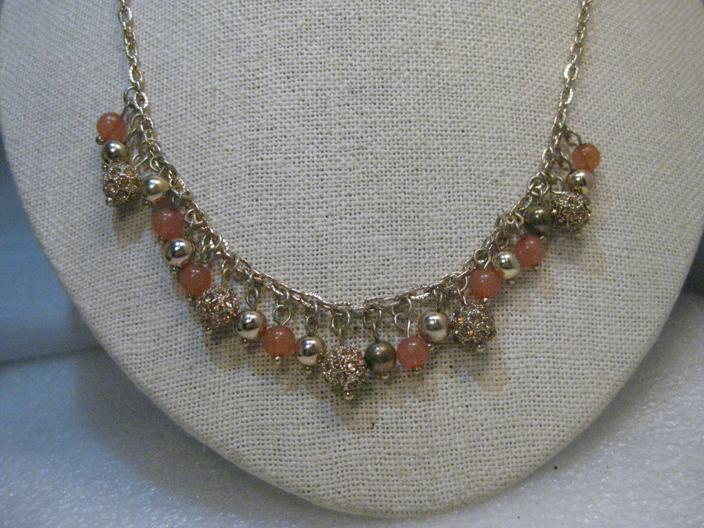 Swarovski Beaded Necklace 18", Dangle beaded with gold tone beads that are 6mm wide and round butterscotch glass beads with 8mm disc ball-like pave set crystals beads with golden crystals. It has an oval link chain that alternates link direction. It has the swan charm at the lobster clasp with a clear "element" on one side. Post mid-century. This came from a PA estate sale. Very good condition. See photos. (Lot Loc. W.4.8-5.617.6 - LD 10/29/17)