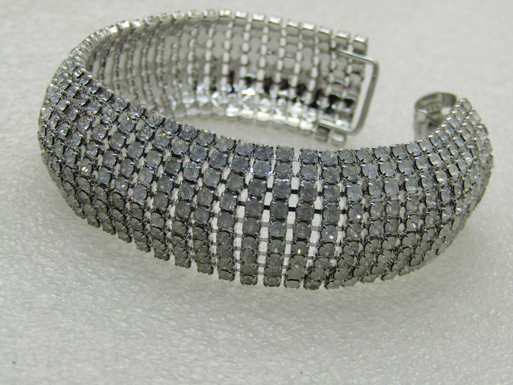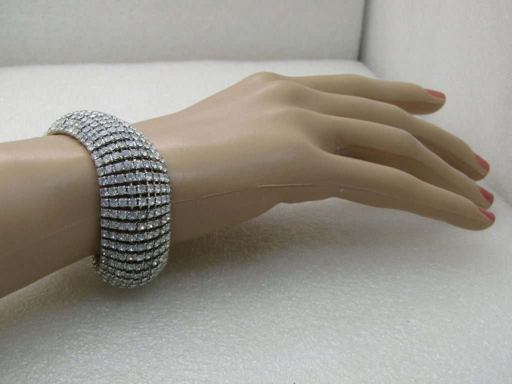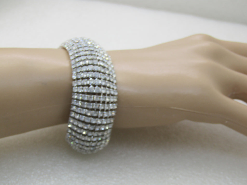 Vintage Joan Rivers Wide Clear Rhinestone Bracelet, 7.5", 1"