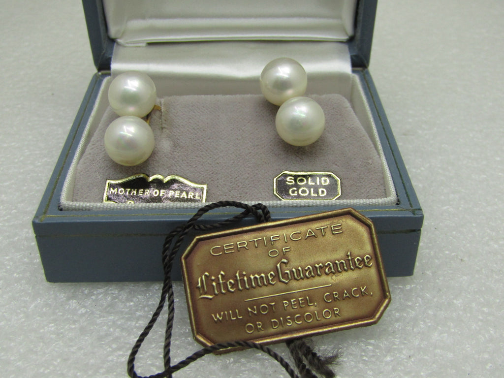 Vintage 10kt Double Pearl Earrings, Screw Back, Majorica Pearls, Spain, In Original Box with Tags